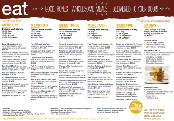 Then we run the same 5 weekly menus four more times ... Plenty of chance to try the meals you missed the first time or to get more of the ones you liked best.